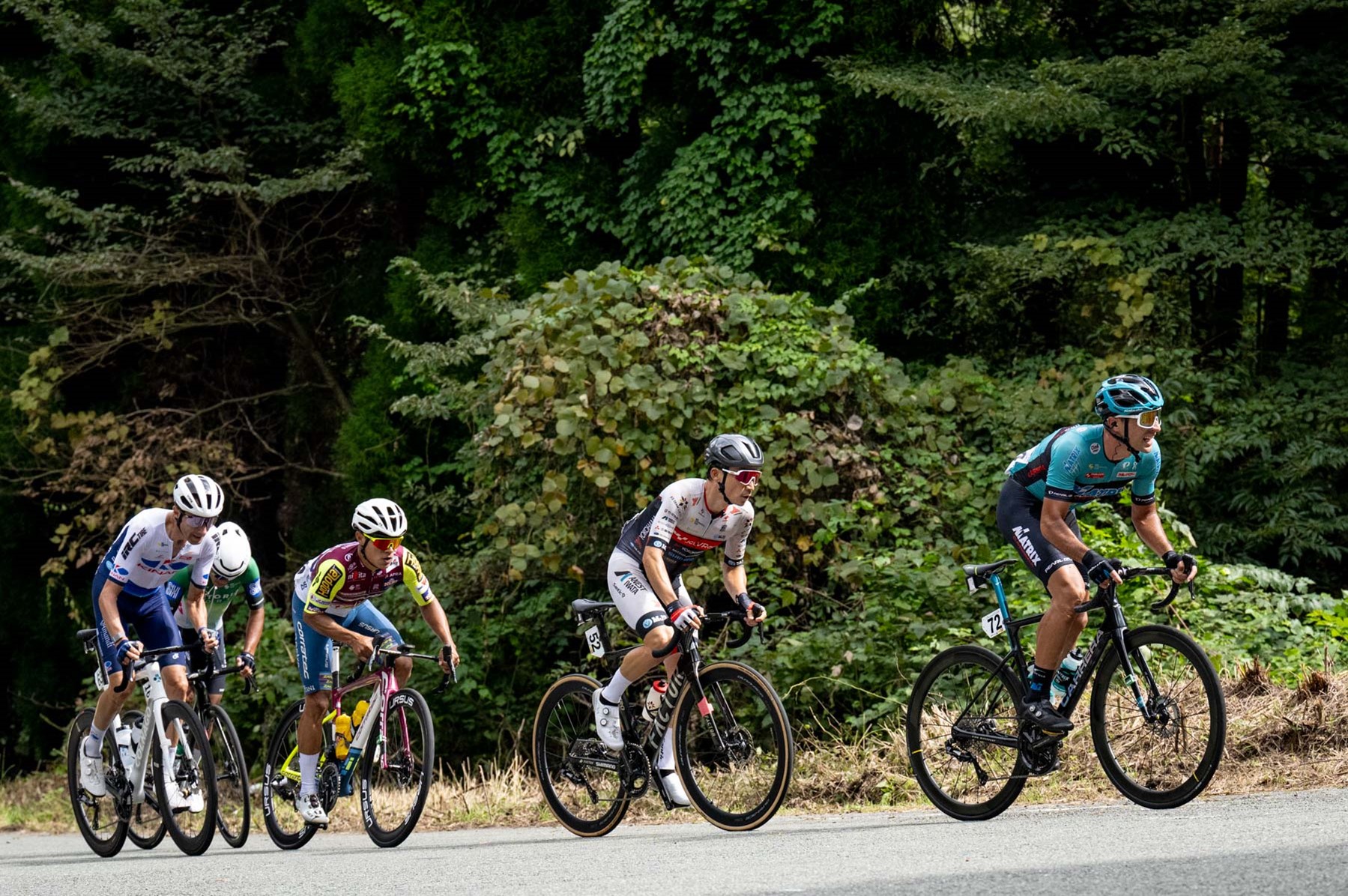 The course featured the Category 1 Hakoseki Pass and three crossings of the Category 2 Amano Pass. An early breakaway formed on the Hakoseki Pass but was quickly absorbed. At the 68 km mark, a group of five riders, including Yuma Koishi (JCL Team UKYO) and Ariel Carlos Samudio Carrera (Corratec Vini Fantini), pushed ahead.