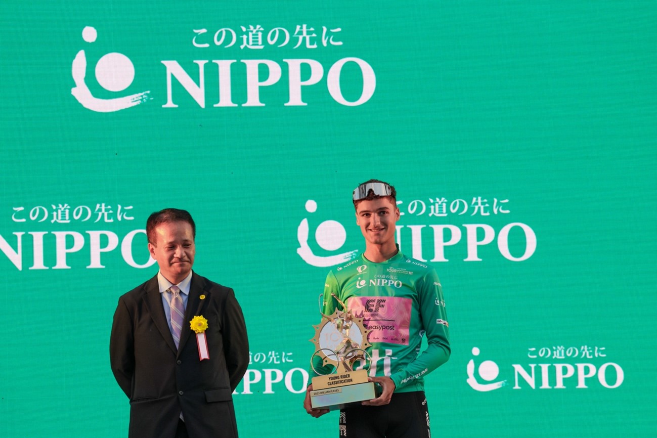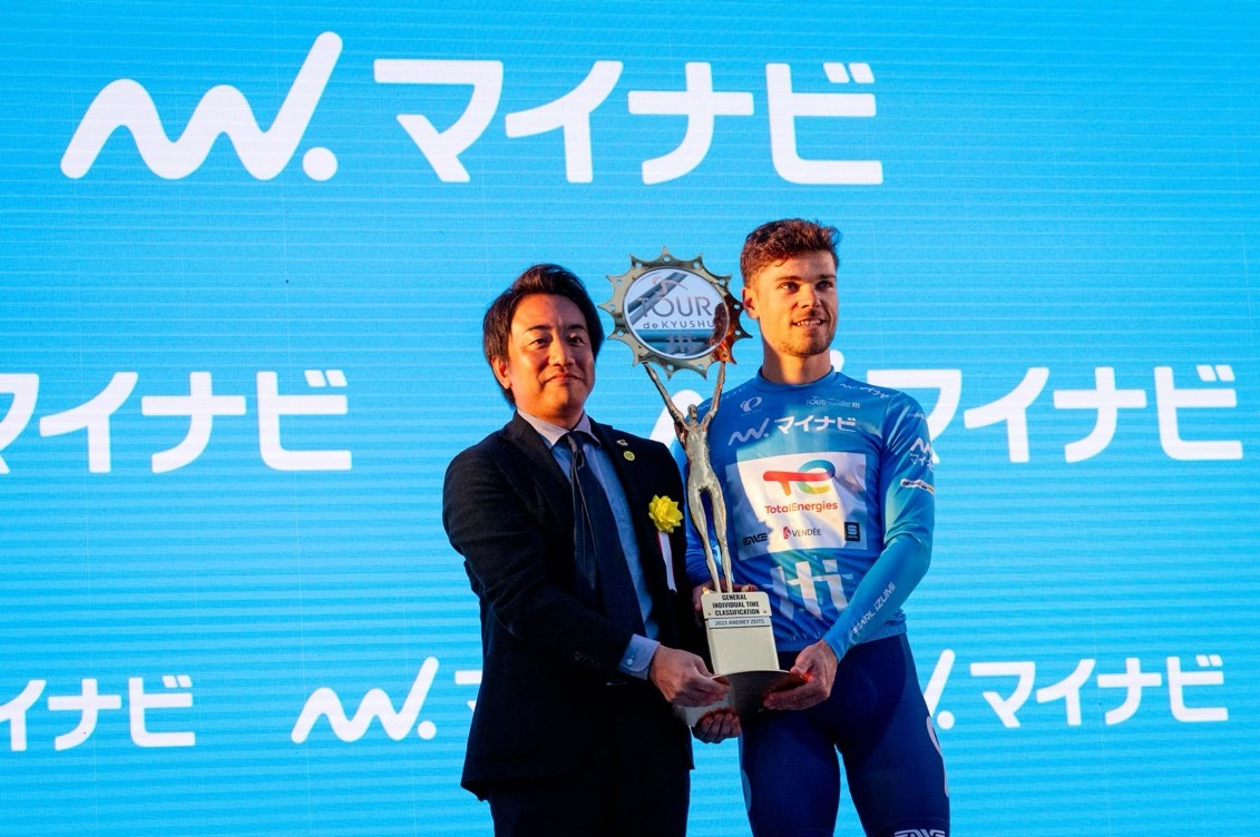 Masayuki Kosaku, Director of the President’s Office at Mynavi Corporation (left), and Emilien Jeannière (TotalEnergies), winner of the Individual General Classification and Points Classification