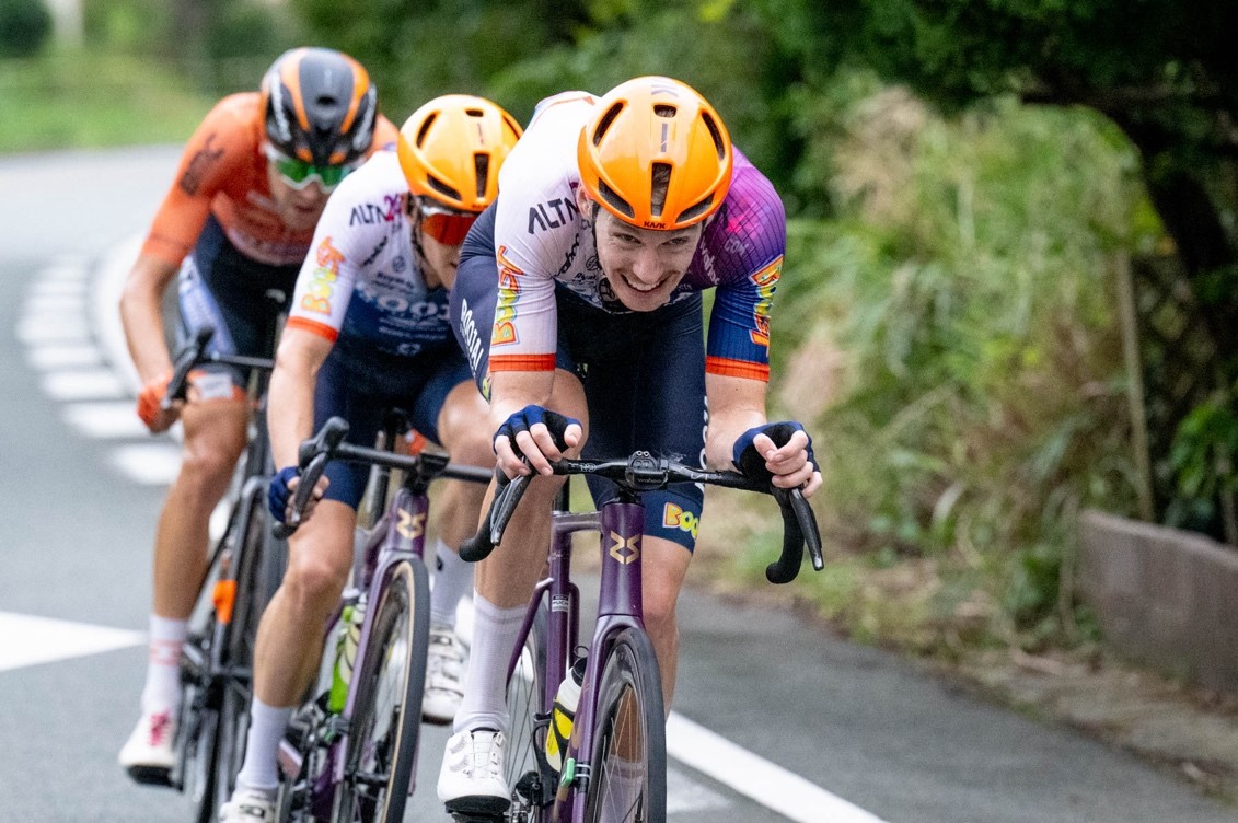 With less than 30 km to go, Adne Van Engelen and Carter Bettles (both from Roojai Insurance), along with Benjamin Dyball (Victoire Hiroshima), broke away from the main group and joined the leading pack. With two laps remaining, they took control of the race.