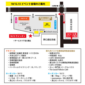 宮崎・大分ステージスタート地点の延岡市では延岡市役所横の野口遵記念館駐車場で10月12日(前日)・13日(当日)にパブリックビューイングや各種ステージイベント、バーチャルサイクリングなどを実施!