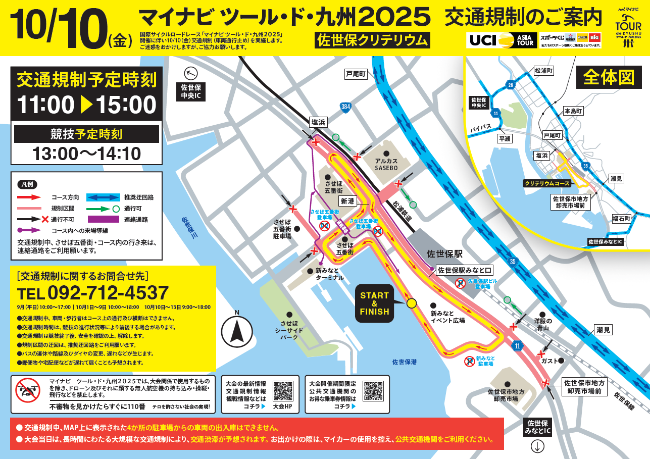 「マイナビ ツール・ド・九州2025佐世保クリテリウム」開催に伴い、佐世保駅・させぼ五番街周辺において交通規制が行われます。ご不便をおかけしますが、安全でスムーズな大会運営のため、皆様のご理解とご協力をお願いいたします。