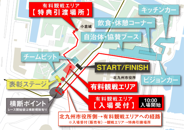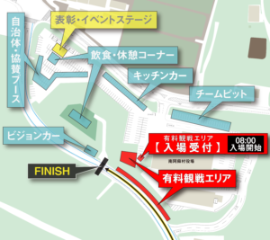 注意事項|・レース中の13:00~14:30頃は道路の横断はできません