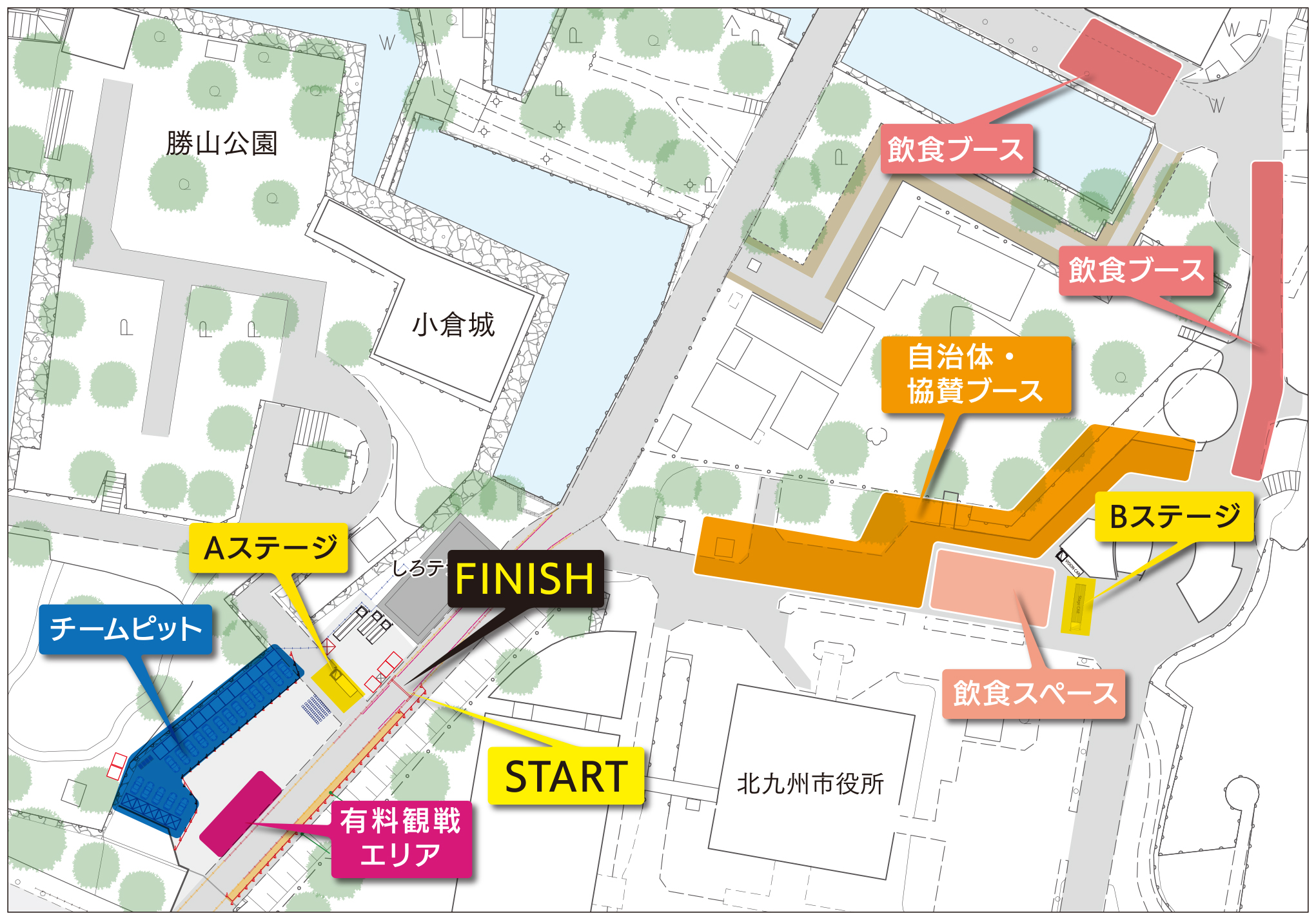 ※10/6小倉城クリテリウムの有料観戦エリアへの入場は11:50までにお願いします。また、12:00~15:00は交通規制のため、道路の横断ができませんので予めご了承ください。