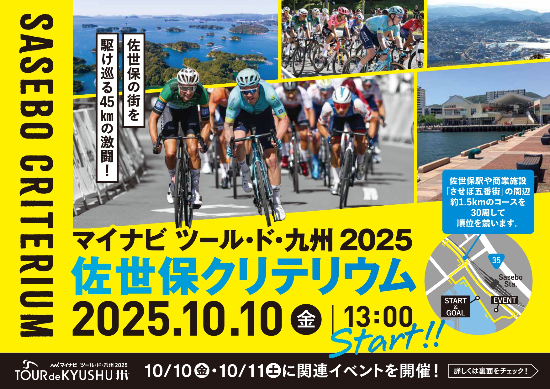 開催コースは、佐世保港の近くに位置しており、急カーブと直線が入り混じった、高度なテクニックが求められるほか、商業施設や歩道からの観戦がしやすいうえ、選手との距離が近く、臨場感を楽しむことができます。
